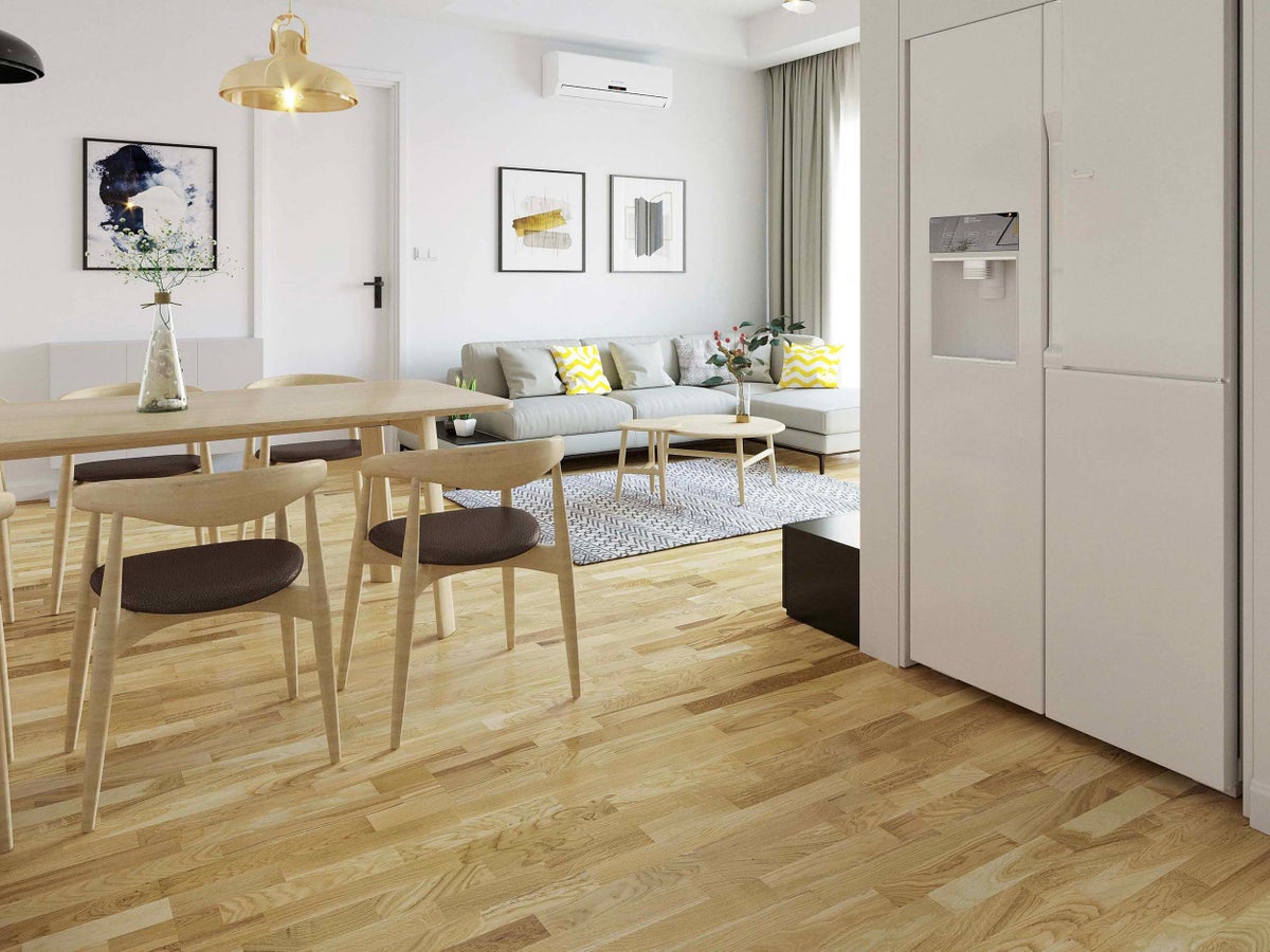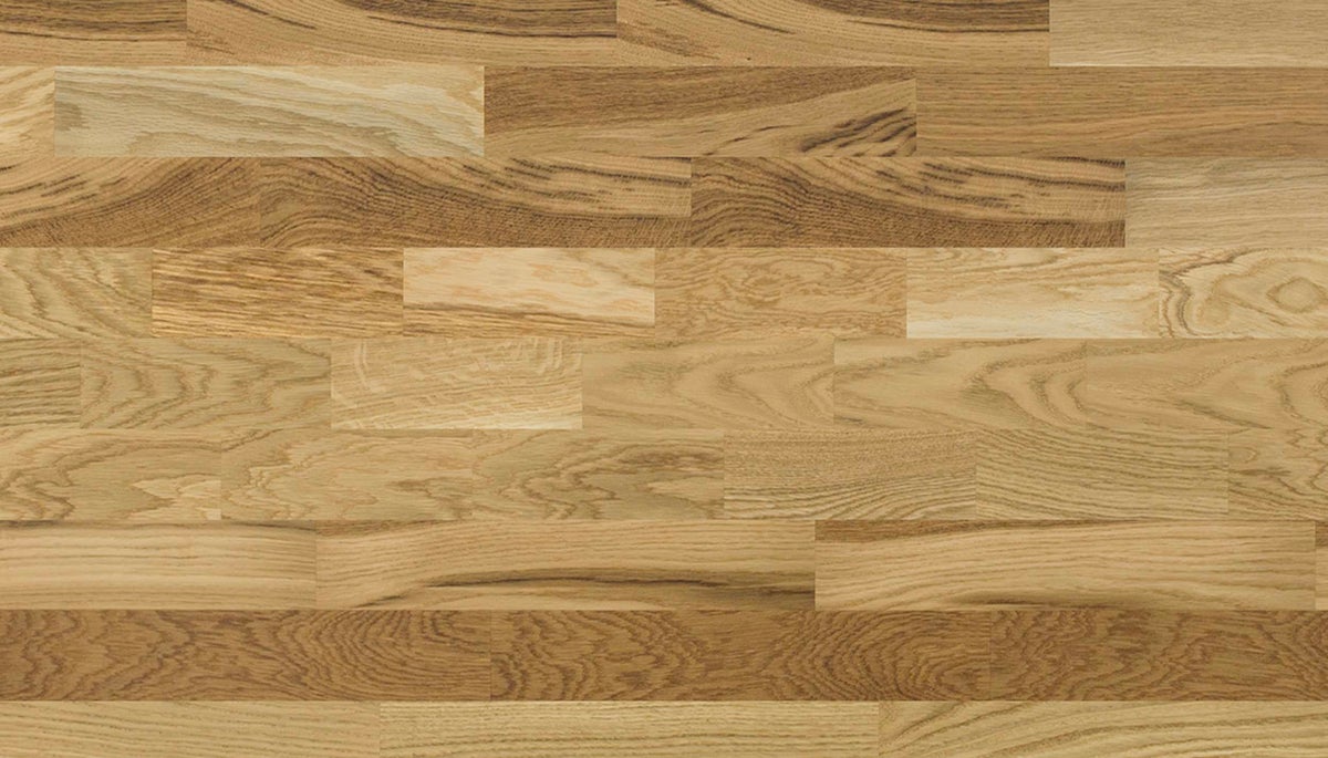 Perinteinen 3-säleinen tammiparketti eloisana ja vilkkaana. Tässä parketissa on runsaasti sävyvaihteluita ja syykuvionti reilusti näkyvissä!
